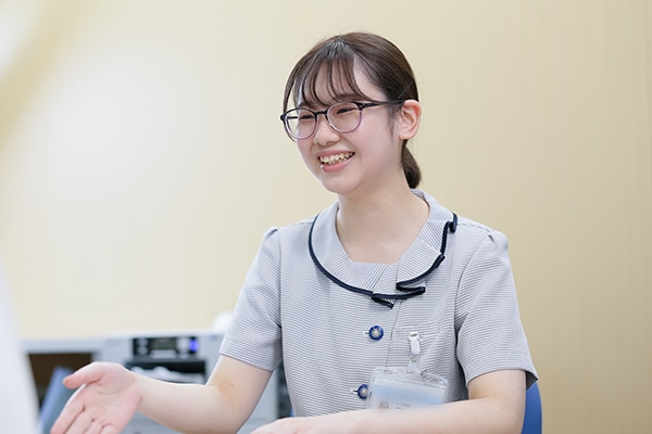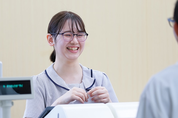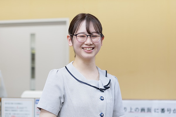 また、受付や医療事務に加えてクラーク業務もできると聞き、専門学校で習った内容を実践できる場があることに魅力を感じました。両方の業務を実際に行うことで、さらに自分のスキルアップが図れると思いこの病院で働くことを決意しました。病院を見学した際、その大きさや清潔さに驚きました。大きな窓からは光がたっぷり差し込み、明るく開放感のある病院と感じたのを覚えています。